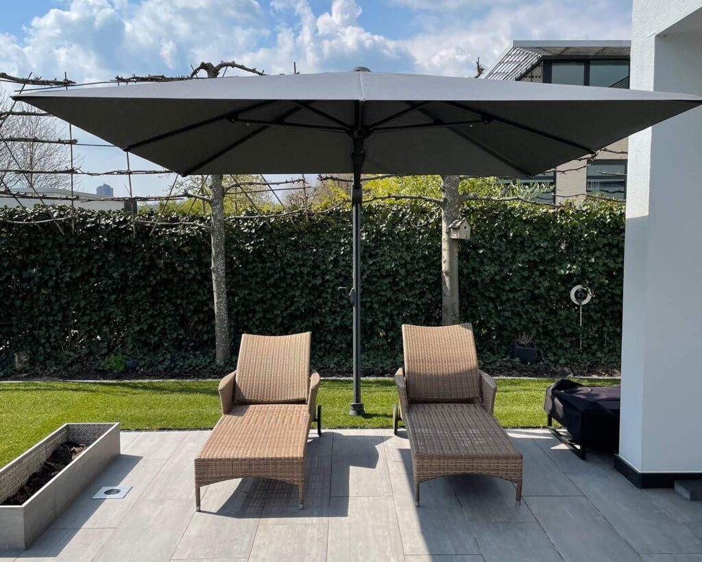 Der Solaris von Shademaker ist ein weiterer Ampelschirm der für Balkon oder Dachterrasse geeignet ist, weil er sehr robust gebaut ist.